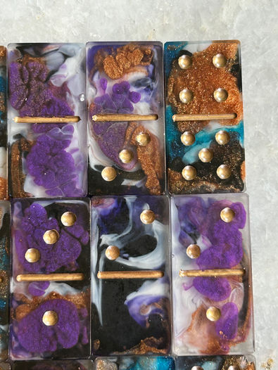 My art pieces are made with flowers handpicked from my garden and resin with pigments and inks swirled and marbled together!